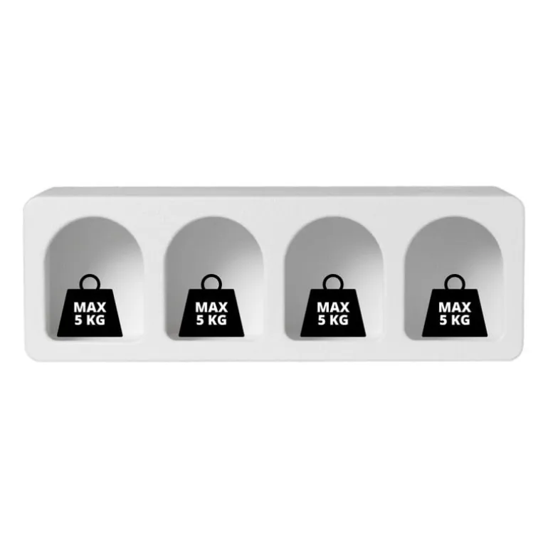 Elke plank van deze vakkenkast heeft een maximaal draagvermogen van 5 kg.