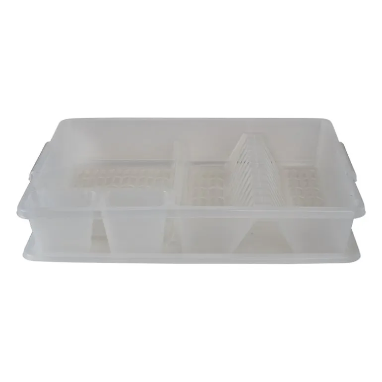 Aan het afwassen? Zet de schone vaat in dit afdruiprek zodat niet het hele aanrecht nat wordt. Dit afdruiprek is gemaakt van kunststof en heeft een witte kleur.