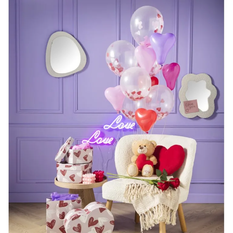 Spread the love met deze ballonnen in de vorm van een hart. De hartvormige ballonnen gemaakt van natuurlijke rubberlatex. De set bestaat uit 6 ballonnen in de kleuren rood en roze.