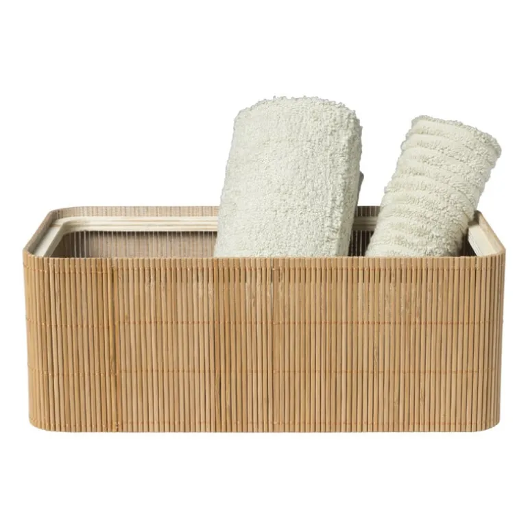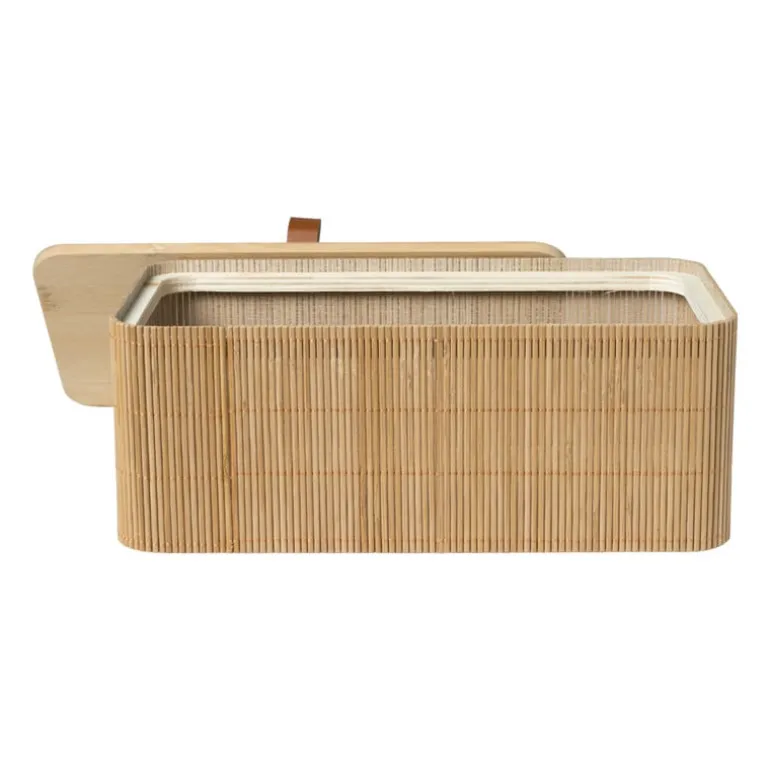 Bamboe kistje Jesse is perfect voor het organiseren van kleine spulletjes, sieraden of om je ruimte netjes te houden. Dankzij het compacte formaat past het kistje gemakkelijk op elke plank, bureau of dressoir. Het lichte, neutrale design past moeiteloos in elke kamer, of het nu de badkamer, slaapkamer of keuken is. Het deksel zorgt ervoor dat je spullen stofvrij blijven en geeft een vleugje elegantie aan het geheel. Het kistje is 10 cm hoog, 27 cm breed en 15.5 cm diep.