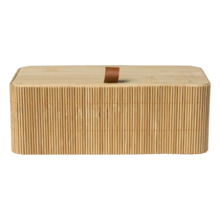 Bamboe kistje Jesse is perfect voor het organiseren van kleine spulletjes, sieraden of om je ruimte netjes te houden. Dankzij het compacte formaat past het kistje gemakkelijk op elke plank, bureau of dressoir. Het lichte, neutrale design past moeiteloos in elke kamer, of het nu de badkamer, slaapkamer of keuken is. Het deksel zorgt ervoor dat je spullen stofvrij blijven en geeft een vleugje elegantie aan het geheel. Het kistje is 8 cm hoog, 23 cm breed en 13 cm diep.