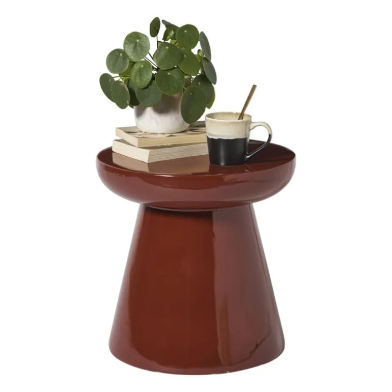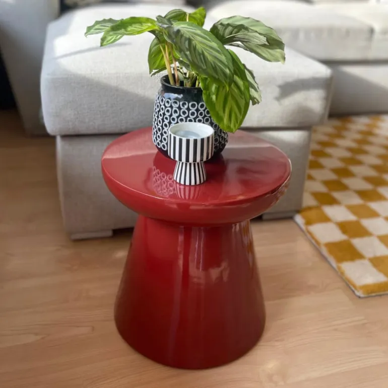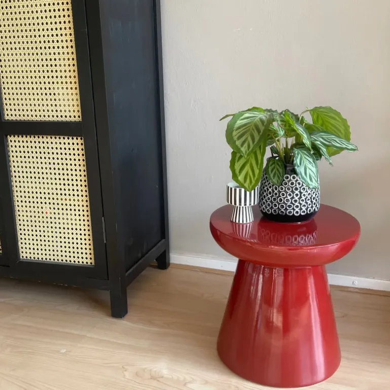 Klein van stuk, groot in stijl! Bijzettafel Calvin is het perfecte voorbeeld van hoe een simpel design een groots statement kan maken. Met z’n speelse paddenstoelvorm en glanzende afwerking brengt hij meteen sfeer in huis. Gebruik ‘m als tafeltje naast je bank, als nachtkastje of zelfs als sokkel voor je favoriete plant. Verkrijgbaar in twee toffe kleuren: olijfgroen voor een natuurlijke look en bordeaux rood voor een vleugje chique.