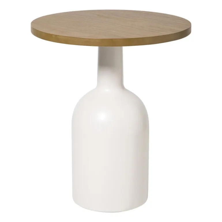 De bijzettafel is gemaakt van MDF en metaal.