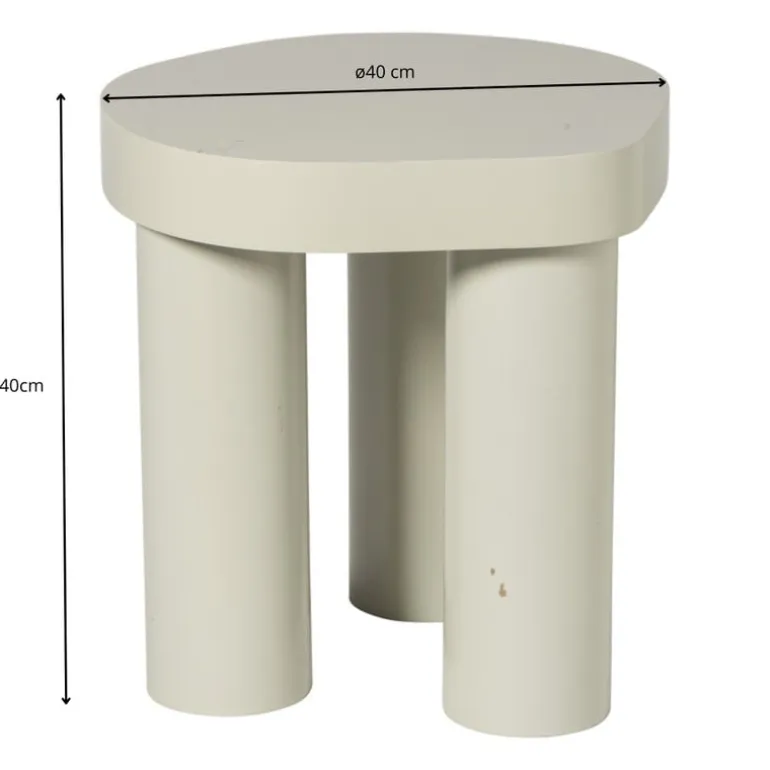 De bijzettafel heeft een doorsnede van 40 cm en een hoogte van 40 cm.