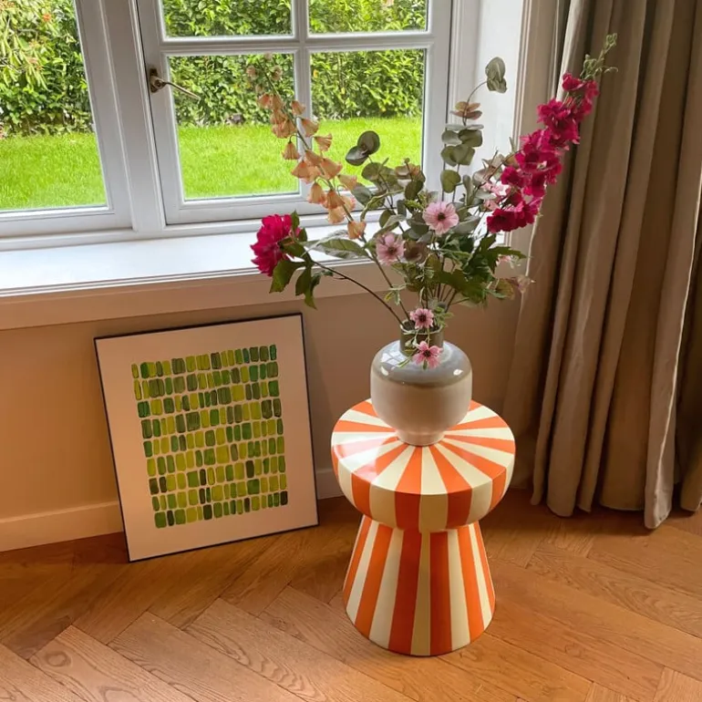 Zet de toon in je interieur met deze eyecatcher van een bijzettafel! De vrolijke strepen en speelse vorm geven direct een dosis retro vibes aan je kamer. Of je ‘m nu naast de bank zet met een kop thee erop, in de hal als opvallende binnenkomer of in de slaapkamer als nachtkastje – deze bijzettafel steel overal de show.