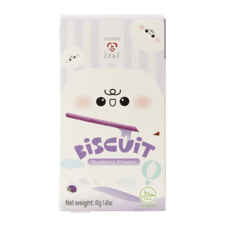 Proef de perfecte balans tussen knapperig en fruitig met de Tokimeki biscuit sticks bosbes. Deze dunne koekstaafjes zijn omhuld met een laagje romige bosbessensmaak en zorgen voor een lichte en zoete snack. Ideaal voor onderweg of bij een kop thee!