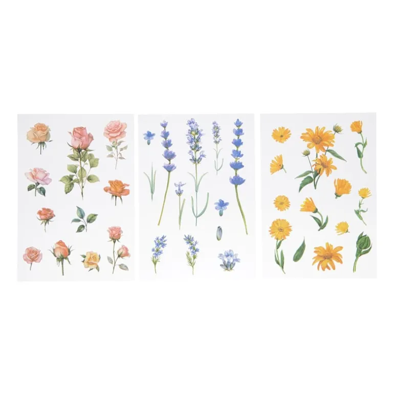 Bloei op met deze vrolijke bloemenstickers! Met deze set van 3 vellen bloemenstickers versier je eenvoudig kaarten, schriften, cadeaus of je bullet journal. De stickers hebben een gedetailleerde en realistische uitstraling, met prachtige bloemen zoals goudsbloemen, rozen en lavendel.