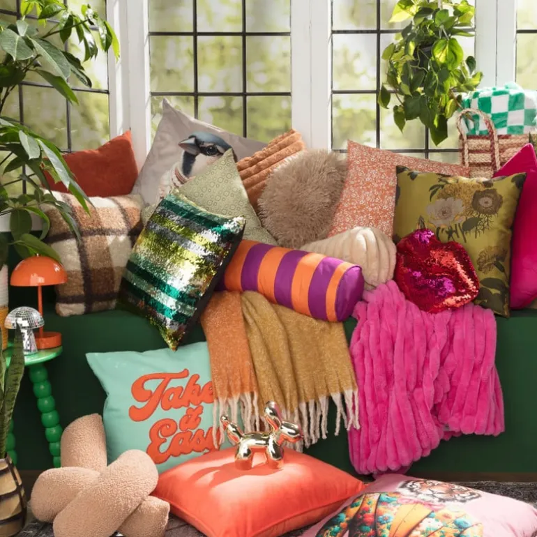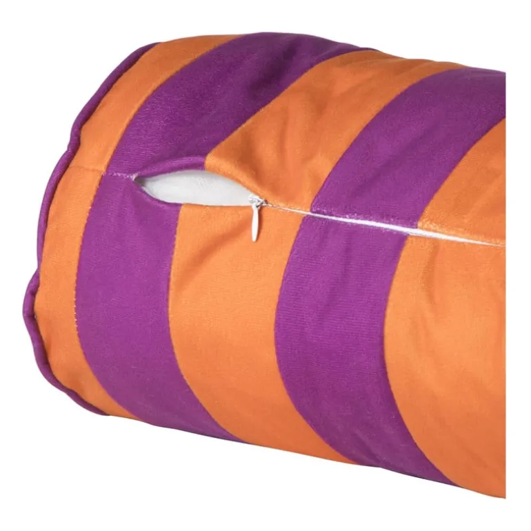 Dit vrolijke bolster kussen wil je hebben! Het kussen heeft paarse en oranje strepen en fleurt elke ruimte op. Combineer ‘m met andere kleurrijke kussens voor op je bank, in een fauteuil of op je bed. Het bolster kussen is gemaakt van polyester en heeft een doorsnede van 18 cm en een breedte van 45 cm. Het kussen is aan de voor- en achterkant hetzelfde en is voorzien van een ritssluiting aan de onderkant. Hierdoor kan de hoes gemakkelijk worden verwijderd en worden gewassen in de wasmachine (maximaal 30°C).