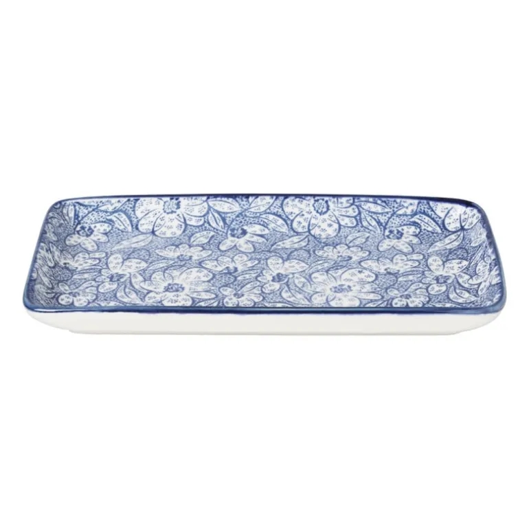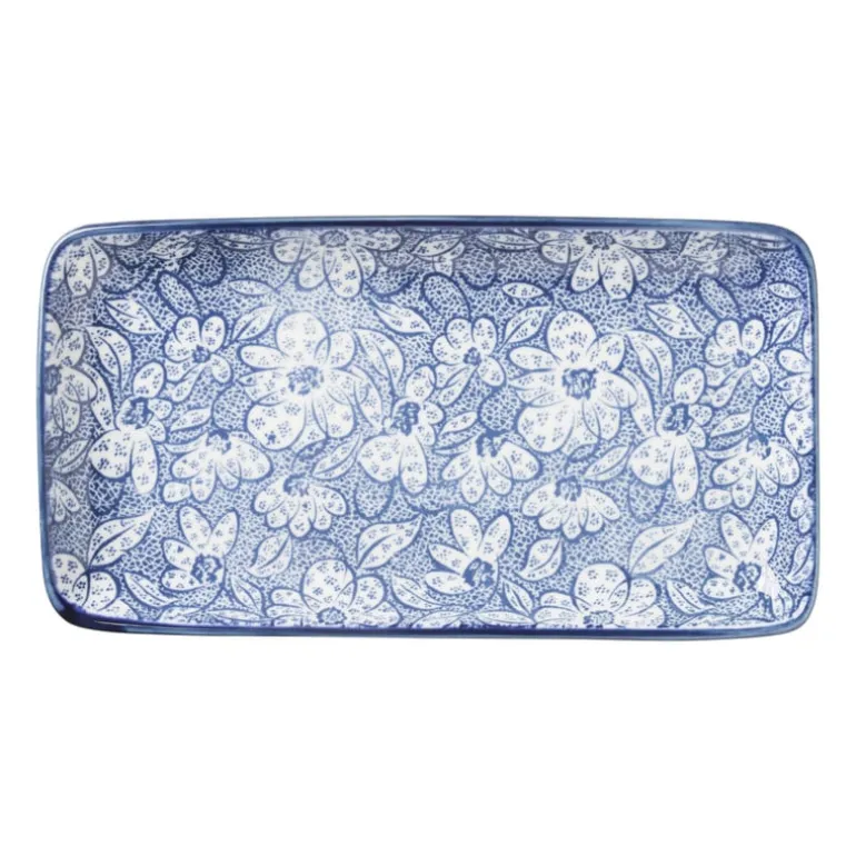 Dit rechthoekige bord is een waardigee toevoeging aan jouw servies collectie. Het is perfect te gebruiken voor een sushi of tapas avond. Het bord heeft een blauwe print en het is verkrijgbaar in diverse dessins. Mix & match naar je eigen smaak!