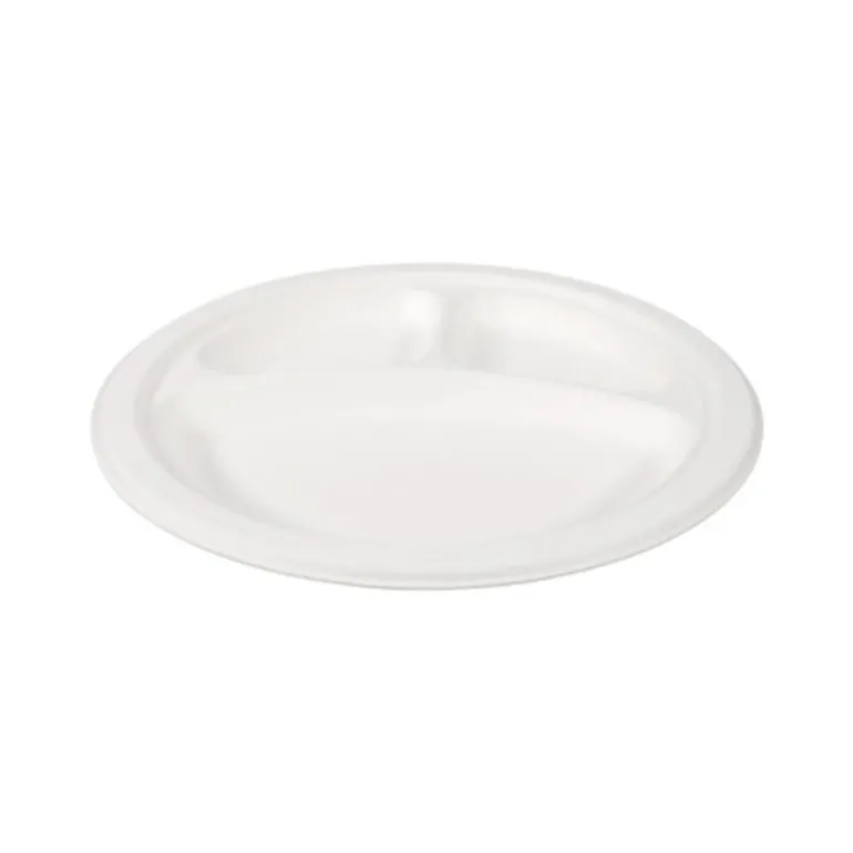 Deze set van 12 borden van bagasse met 3 vakken is de perfecte keuze voor een praktische eetervaring. Deze borden biologisch afbreekbaar en een milieuvriendelijke keuze voor je feestjes, picknicks of barbecues. De drie vakken helpen om verschillende gerechten gescheiden te houden, zodat je geen zorgen hoeft te maken over mengsels van smaken. Ze zijn stevig genoeg voor zowel warme als koude gerechten en bieden een gemakkelijke manier om je maaltijden netjes te serveren.