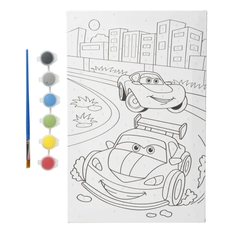 Hé Picasso! Pak je penseel maar en kleur dit schilderdoek in. Er staan al leuke figuren op dus dat maakt het extra makkelijk. De set bestaat uit een canvas doek van 30×20 cm, 6 kleuren verf en een penseeltje. Alles wat je nodig hebt om te beginnen.