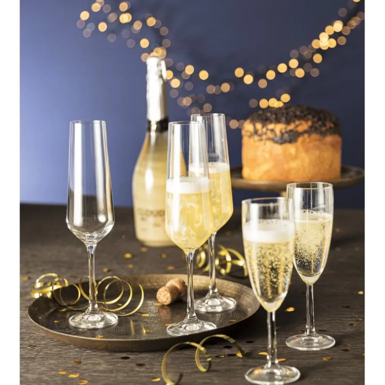 Deze champagneglazen hebben een chique uitstraling. Gebruik het champagneglas tijdens bijzondere gelegenheden zoals kerst en oud & nieuw. De champagne glazen zijn gemaakt van helder en sterk glas en komen in een set van 4. De inhoud per glas is 200 ml. De champagneglazen zijn vaatwasmachine bestendig.