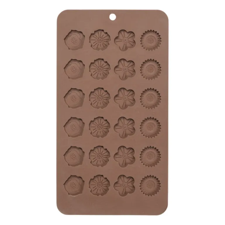 Met deze chocolade mal maak je in een handomdraai de mooiste, kleine chocolaatjes naar jouw eigen smaak, ideaal om taarten, cakes of bonbons te decoreren. De mal is gemaakt van siliconen waardoor deze gemakkelijk af te wassen is en de kleur van de mal is bruin.