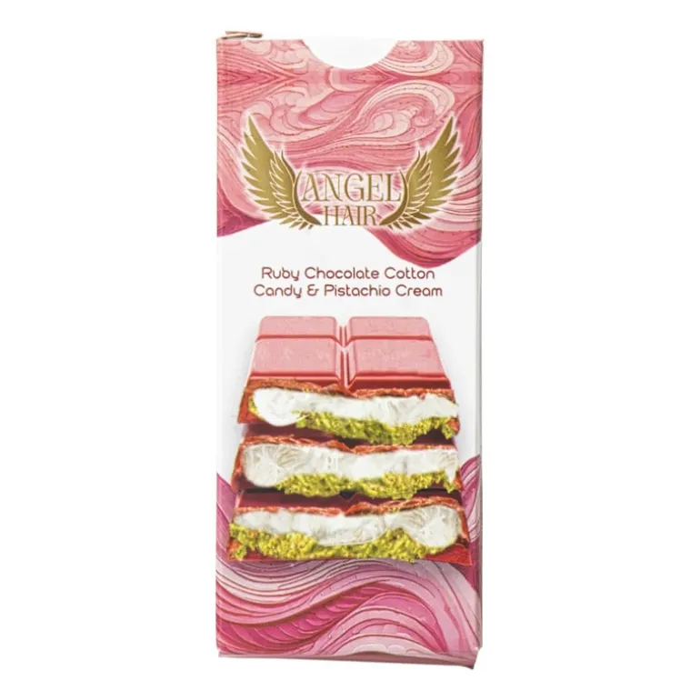 Deze angel hair chocolade in ruby is luchtig, feestelijk en onweerstaanbaar lekker. De fijne slierten smelten op je tong en zijn perfect om van te snoepen of als decoratie op je dessert. Inhoud: 100 gram.