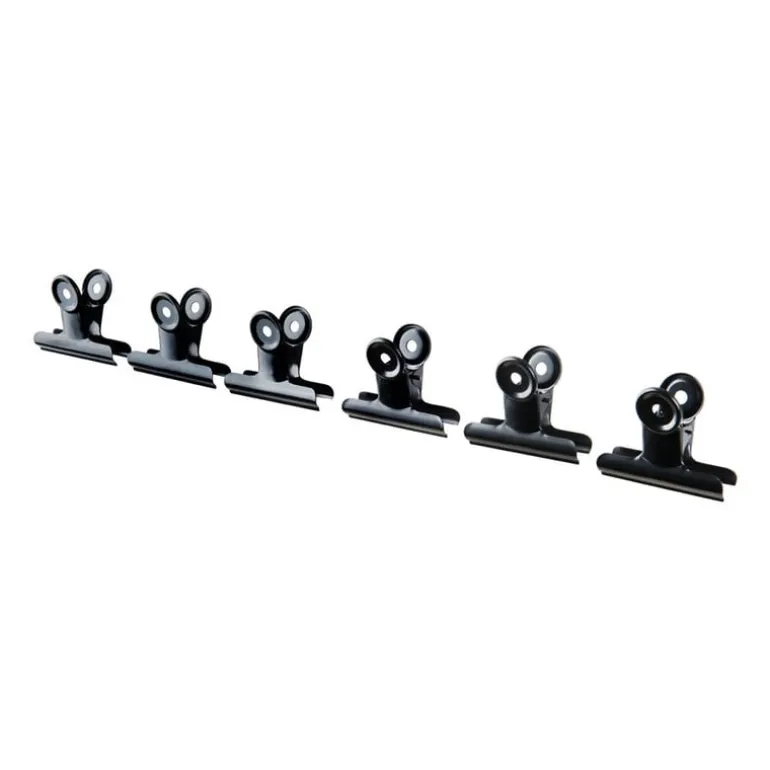 Handige zwarte clips voor aan een wandrek. Hang je foto’s, quotes of slingers op! Je to-do lijstjes, foto’s en andere belangrijke dingen bevestig je zo aan een wandrek. Zo maak je in een handomdraai een persoonlijke wanddecoratie. Er zitten 6 zwarte clips in één verpakking. De clips zijn gemaakt van metaal, hebben een zwarte kleur en een afmeting van 6.5 cm per stuk. Xenos heeft veel verschillende accessoires voor je wandrek, bekijk ze allemaal!