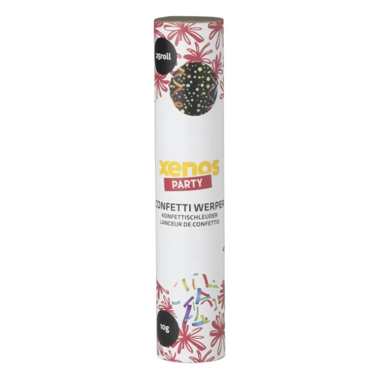 Met dit feestelijke confettikanon maak je het feestje helemaal compleet! Je pakt het kanon vast, geeft een stevig draai en de kleurige confetti knalt uit het kanon! Superleuk voor op verjaardagen, bruiloften of andere feestjes. De lengte van het kanon is 25 cm, de diameter is 5 cm. Dit product is alleen voor volwassenen. Lees voor gebruik goed de aanwijzingen op het product!