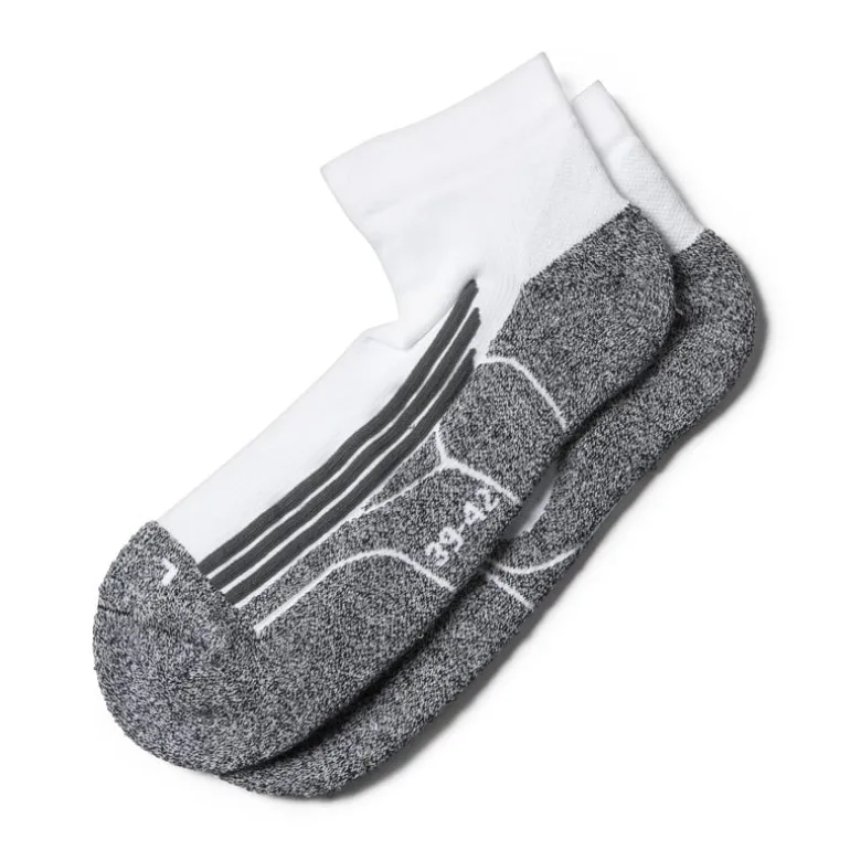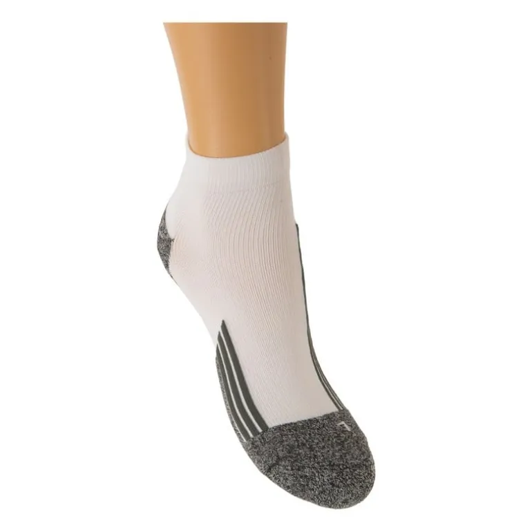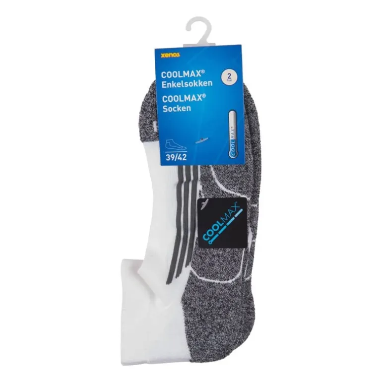 Met deze coolmax enkelsokken heb jij geen last van zere voeten tijdens een stevige wandeltocht. Deze sokken zijn gemaakt van 42% polyester, 42% katoen, 14% polyamide, 2% elastine. De sokken zijn perfect voor een lange wandeltocht, maar ook heerlijk om dagelijks te dragen. De sokken mogen gewassen worden op 40 graden Celsius. De enkelsokken hebben een uitstekende vochtafvoer en zijn snel drogend. Een verpakking bevat 2 paar sokken.Ā