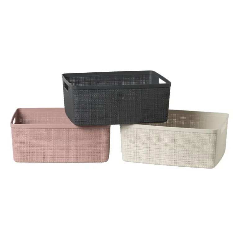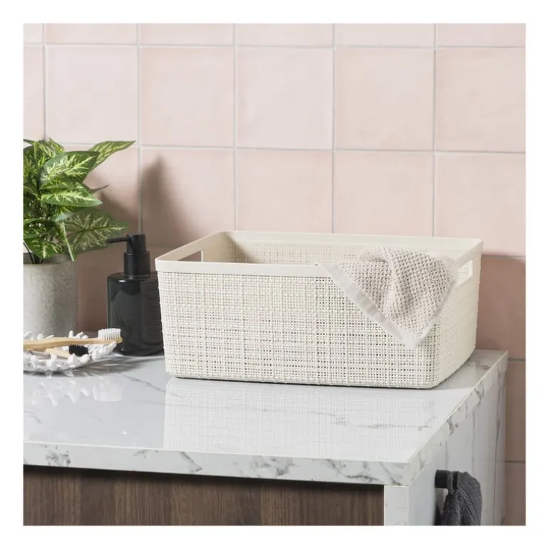Deze opbergmand combineert stijl en functionaliteit. De mand is gemaakt van duurzaam kunststof met een jute-achtige textuur, waardoor hij niet alleen mooi is om naar te kijken, maar ook nog eens stevig en gemakkelijk schoon te maken is. De manden zijn geïnspireerd op handgemaakt textiel en gemaakt van meer dan 70% gerecyclede kunststof, wat zorgt voor een authentieke, natuurlijke uitstraling. Of je deze opbergmand nu in de badkamer, slaapkamer of wasruimte plaatst, het zal zeker een stijlvolle en praktische aanvulling zijn op je interieur.