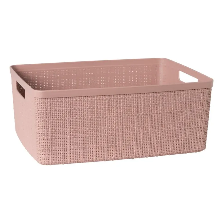 De mand heeft een capaciteit van 12 liter en een hoogte van 15 cm, een breedte van 36 cm en een diepte van 28 cm. De mand is roze van kleur.