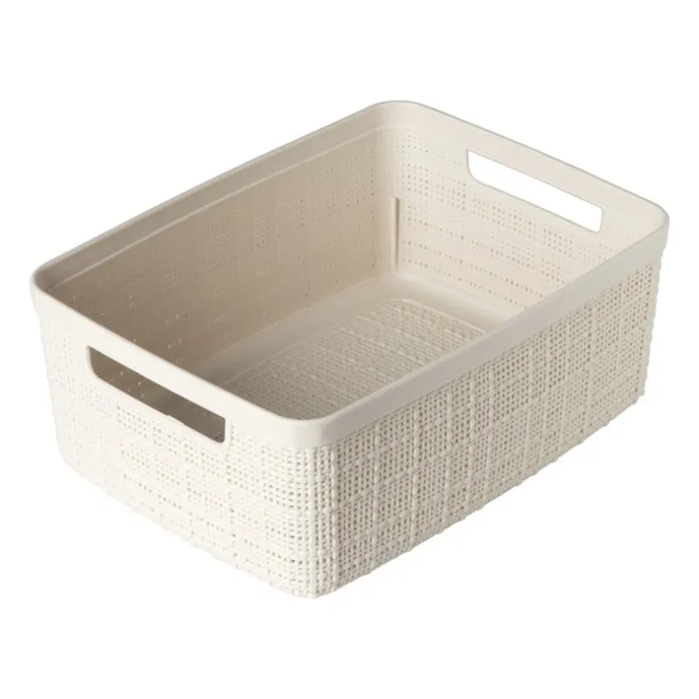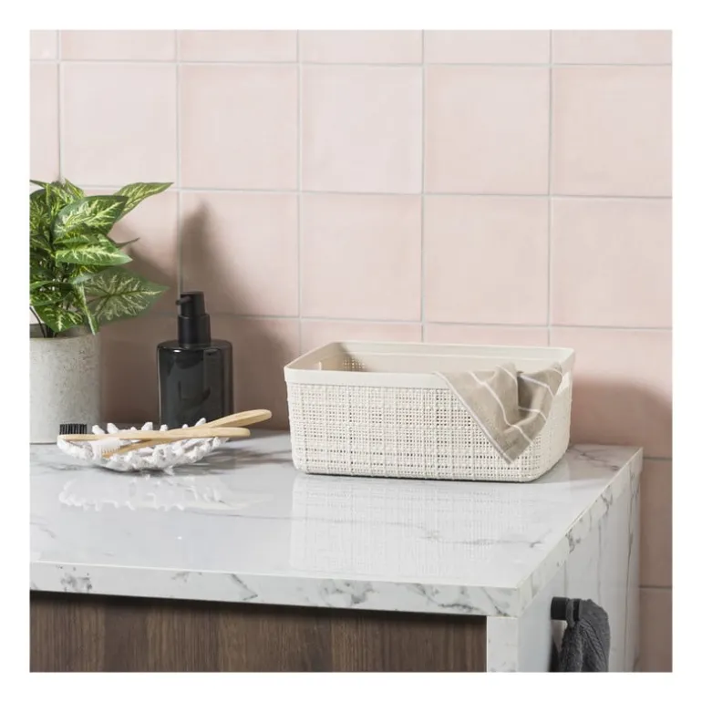 Deze opbergmand combineert stijl en functionaliteit. De mand is gemaakt van duurzaam kunststof met een jute-achtige textuur, waardoor hij niet alleen mooi is om naar te kijken, maar ook nog eens stevig en gemakkelijk schoon te maken is. De manden zijn geïnspireerd op handgemaakt textiel en gemaakt van meer dan 70% gerecyclede kunststof, wat zorgt voor een authentieke, natuurlijke uitstraling. Of je deze opbergmand nu in de badkamer, slaapkamer of wasruimte plaatst, het zal zeker een stijlvolle en praktische aanvulling zijn op je interieur.
