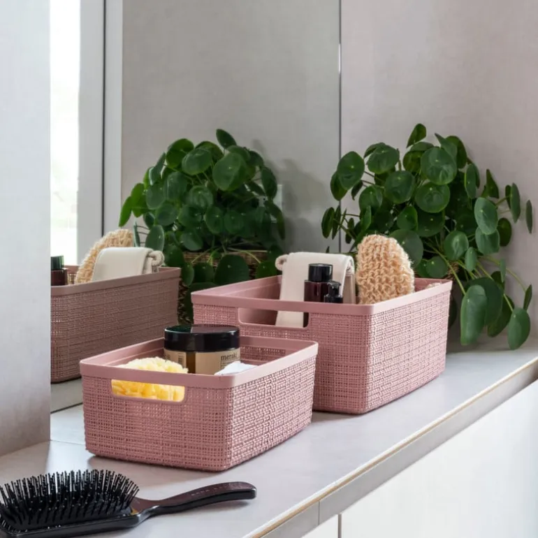 De mand heeft een capaciteit van 5 liter en een hoogte van 11 cm, een breedte van 27 cm en een diepte van 20 cm. De mand is roze van kleur.