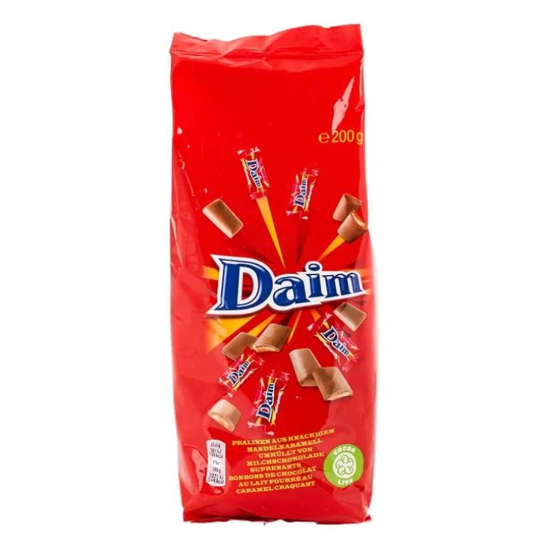 Daim chocolade is onweerstaanbaar lekker! In de chocolade zitten brosse stukjes amandelboter, dit maakt de iedere hap extra knapperig. Smullen maar!