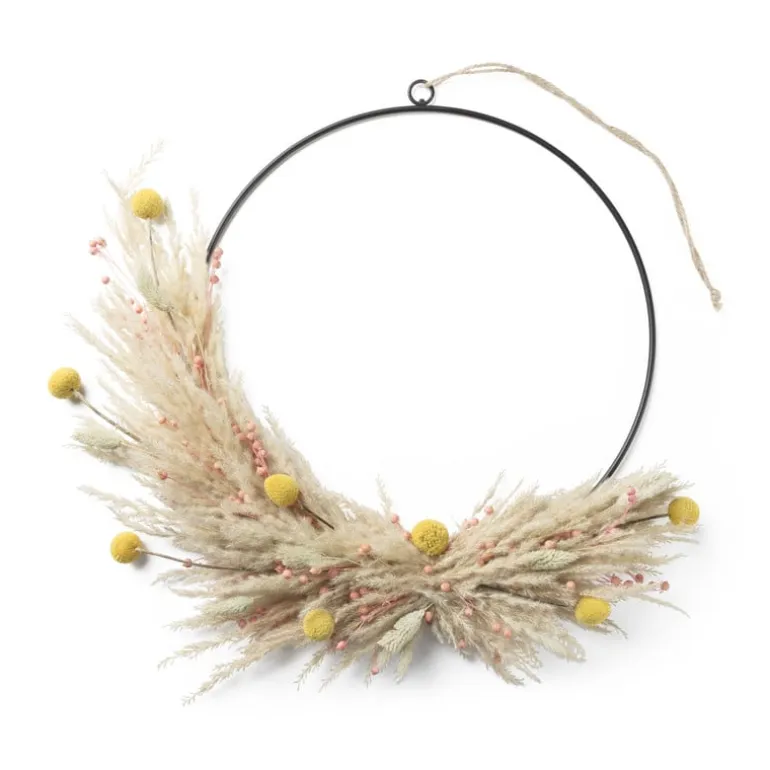 Deze ring is mooi door zijn eenvoud. Maar hierdoor ook super handig om er zelf deco aan vast te maken. Denk bijvoorbeeld aan mooie takken of droogbloemen. Daarnaast kun je met deze ring van alles ondernemen. Neem nou het maken van een kerstkrans, je hebt deze ring als mooie basis. Er zit al een mooi stukje touw aan de ring vast zodat je hem gemakkelijk kan ophangen. Het is gemaakt van ijzer en heeft een diameter van 35 cm.