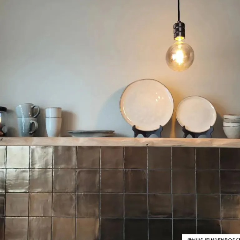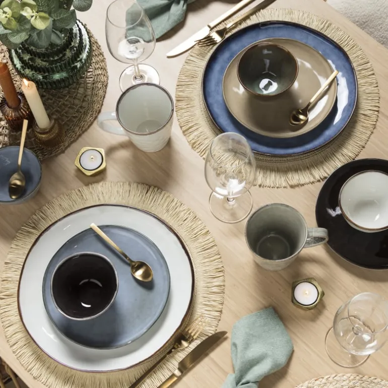 Dit dinerbord is voorzien van reactive glaze, een bijzonder type glazuur dat wordt toegepast bij de productie van deze aardewerk items. Dit glazuur reageert op de chemische samenstelling van het materiaal en de omgeving tijdens het bakproces, waardoor elk item een unieke afwerking krijgt.