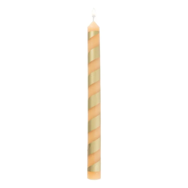 Deze beige dinerkaars is versierd met diagonale gouden strepen en zorgt voor een perfecte mix van stijl en sfeer. De beige tint gecombineerd met het gouden accent is ideaal voor een gezellig diner of als decoratief element in je interieur. Het gestreepte design en de gouden kleur geven een speelse twist aan je tafelsetting of interieur.