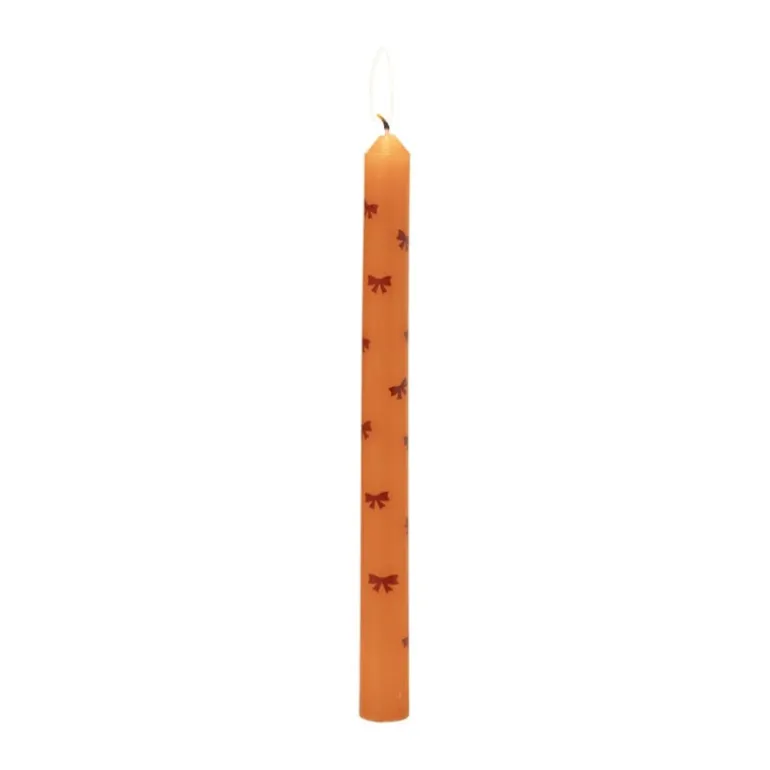 Voeg een vleugje elegantie toe aan je tafelsetting met deze dinerkaars versierd met strikjes. Met een subtiele en sierlijke uitstraling zijn ze perfect voor romantische diners, feestelijke gelegenheden of gewoon een gezellige avond thuis. De kaars heeft ongeveer 8 branduren.