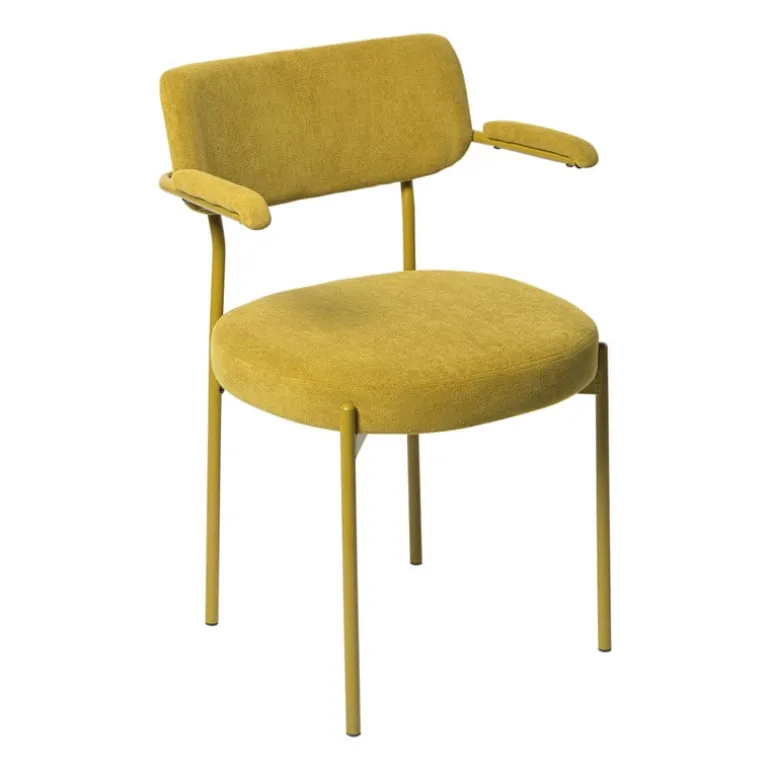 Eetkamerstoel Elvis is stijlvol én comfortabel! Deze prachtige stoel heeft alles in huis om van jouw eethoek een knusse én trendy plek te maken. De ronde zitting, zachte bekleding en fijne armleuningen zorgen ervoor dat je hier gerust urenlang op wilt zitten. Of je nu uitgebreid dineert met vrienden of snel een ontbijtje meepikt – met Elvis zit je altijd goed. De fluweelachtige stof geeft ‘m een luxe uitstraling, terwijl de slanke, metalen poten juist zorgen voor een speelse en moderne twist.