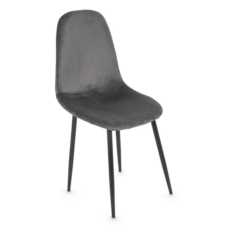 De eetkamerstoel is gemaakt van velvet en metaal.