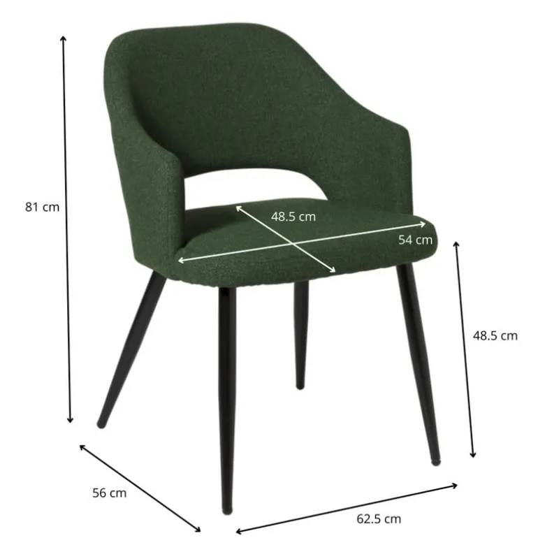 De stoel heeft een hoogte van 81 cm, een breedte van 62.5 cm en een diepte van 56 cm. De stoel heeft een zithoogte van 48.5 cm, een zitbreedte van 54 cm en een zitdiepte van 48.5 cm.