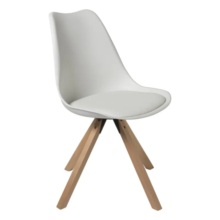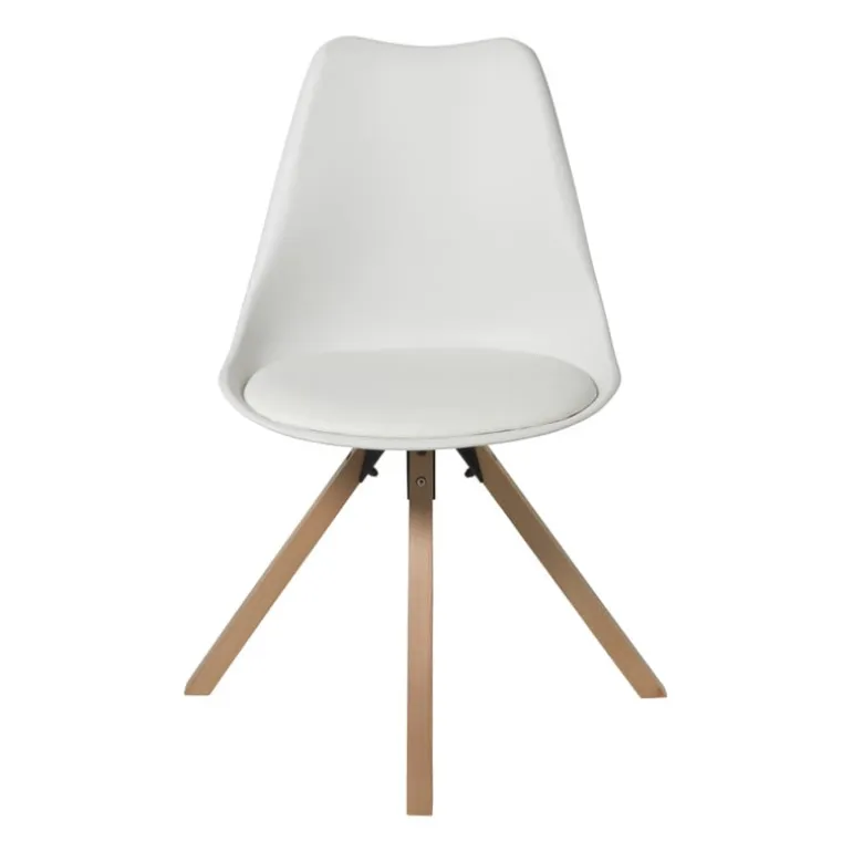 De eetkamerstoel Olympic is gemaakt van metaal, polypropyleen en beuken. De stoel is wit en naturel van kleur.