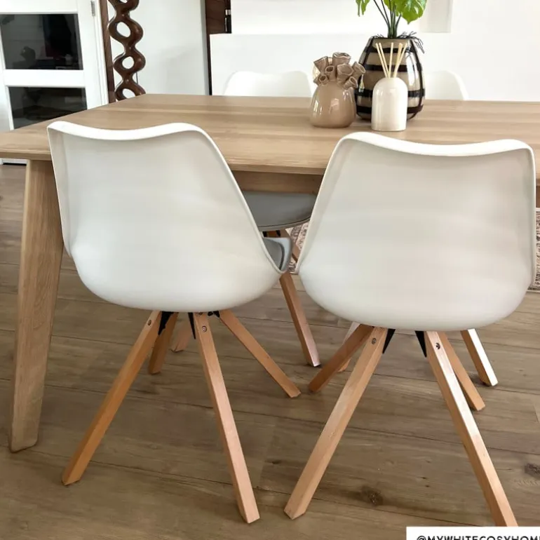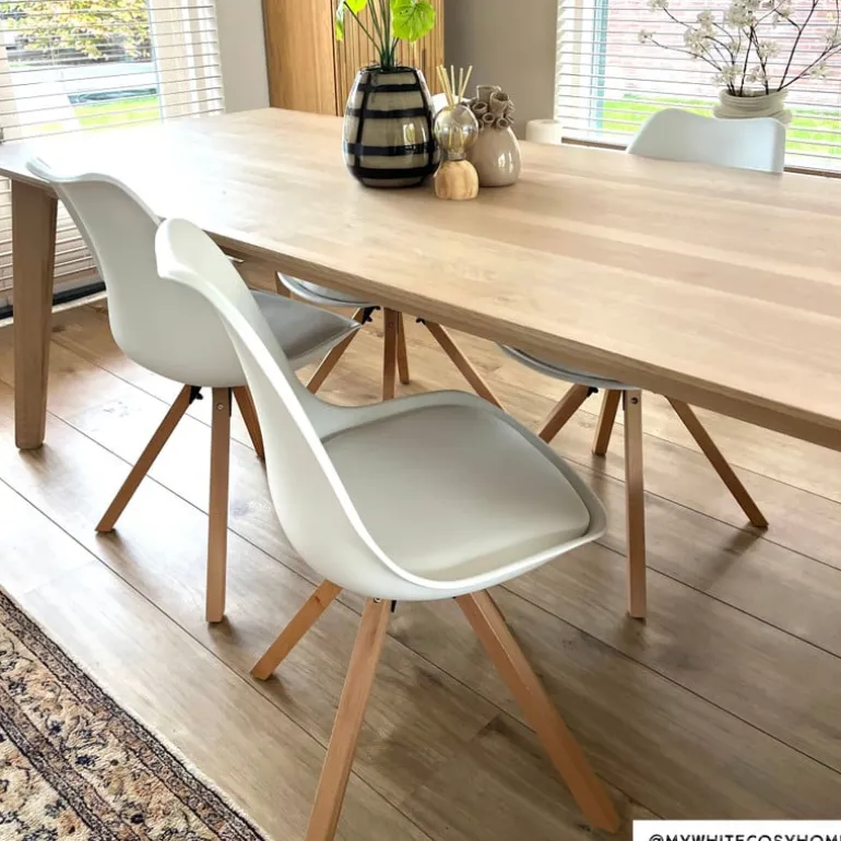 Let op! De poten moeten nog onder de eetkamerstoel worden bevestigd. De montage hiervan is eenvoudig en alle benodigde elementen worden meegeleverd.