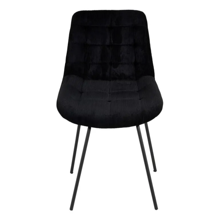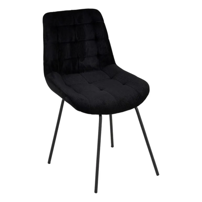 De zwarte eetkamerstoel ribstof voorziet jouw eettafel van een vleugje retro en van heerlijk zitcomfort! De ribbelige textuur voegt een speelse twist toe aan je interieur en zorgt voor een heerlijk knusse zitervaring. Combineer de stoel met verschillende kleuren aan de eettafel voor een speels effect.
