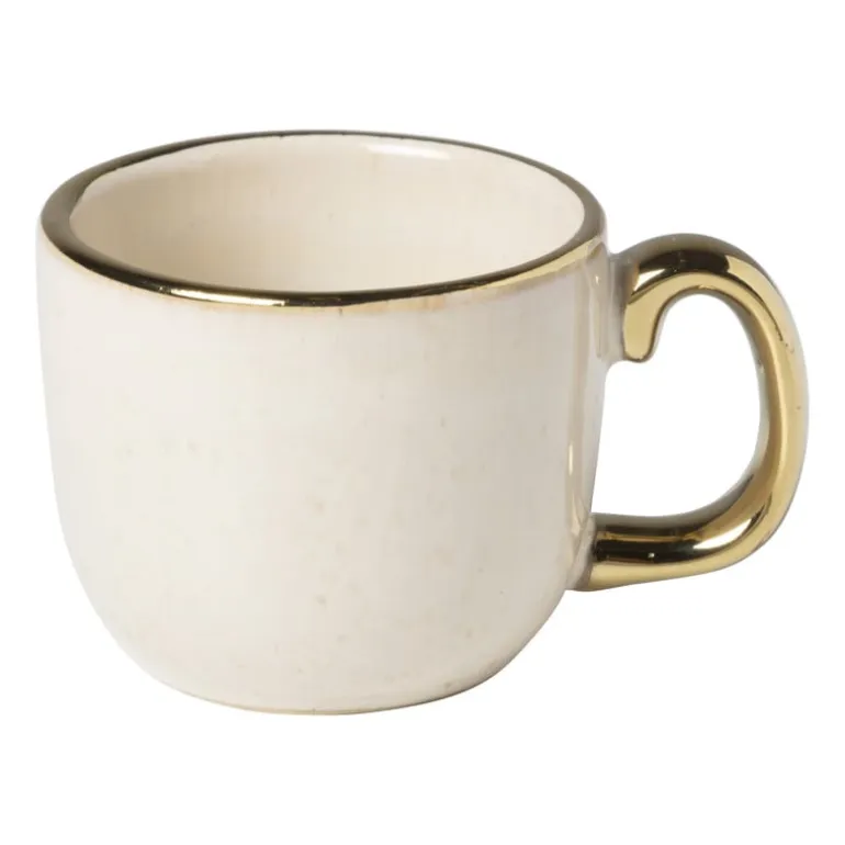 Dit beige espressomokje met gouden rand is een musthave voor elke espressodrinker. Het mokje heeft een inhoud van 80 ml, dat is precies genoeg voor een heerlijke espresso. Bovendien staat het espressomokje met een gouden rand prachtig in je koffiehoek.