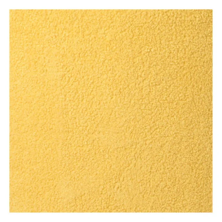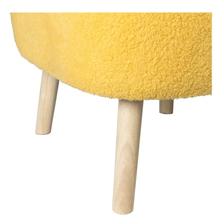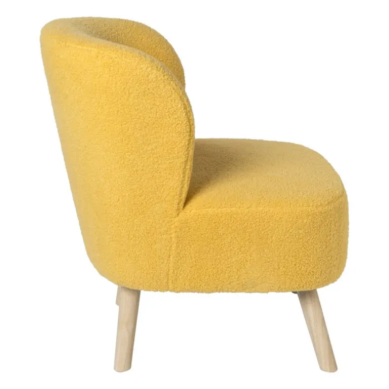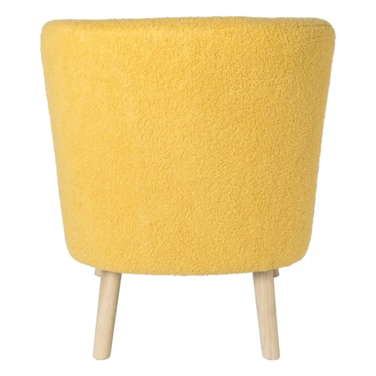 De fauteuil is gemaakt van polyester en heeft een gele kleur.