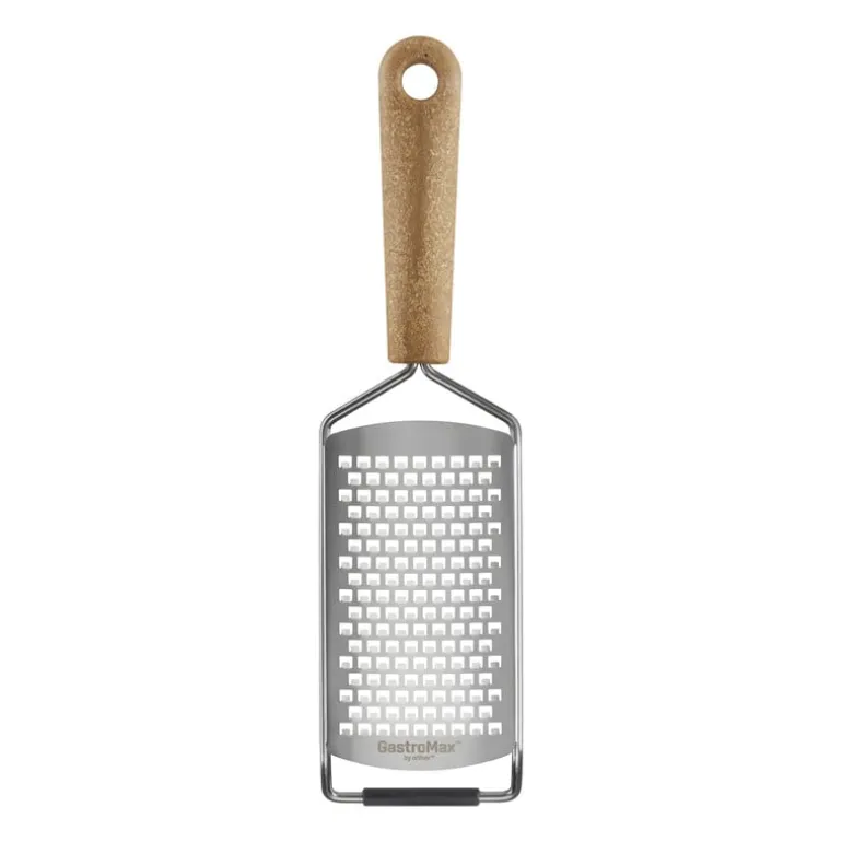 Deze rasp ‘Bio’ van GastroMax is handig voor het raspen van harde kaas, groenten, fruit, chocolade en meer. Het blad van de rasp is gemaakt van roestvrij staal. Bijzonder aan deze rasp is de greep. Deze is voor meer dan 95% gemaakt van een mix van houtvezels en suikerriet, en heeft daardoor een substantieel lagere ecologische voetafdruk. Deze unieke bio-grondstof combineert bovendien de beste eigenschappen van hout en plastic: de rasp is sterk, duurzaam, hygiĆ«nisch en vaatwasmachinebestending.