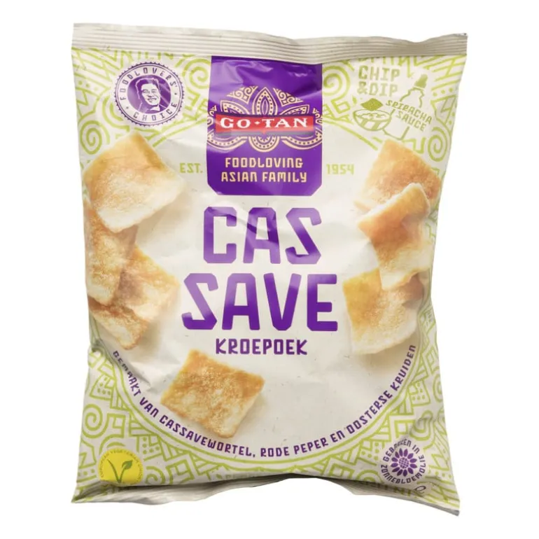 Cassave gemaakt van cassavewortel, rode peper, prei en oosterse kruiden. Lekker als snack of bijgerecht voor een Aziatisch gerecht. In de zak zit 70 gram.