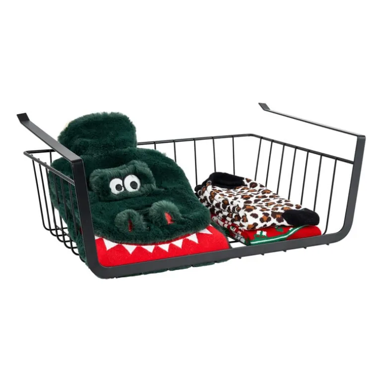 Met deze handige hangmand creëer je snel en gemakkelijk extra ruimte voor jouw dagelijkse spullen. Hang de mand aan een plank en creëer zo eenvoudig extra opbergruimte. De hangmand is zwart en gemaakt van staal en MDF.