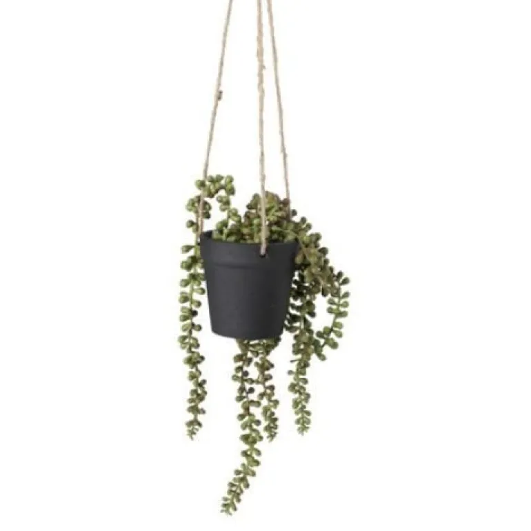 Geen groene vingers? Geen probleem! Dit hangplantje is gemaakt van kunststof en blijft dus het hele jaar groen zonder dat je het plantje water hoeft te geven. Ook handig is dat hij al in een pot zit, dus je hoeft hem alleen nog op te hangen aan het touw.