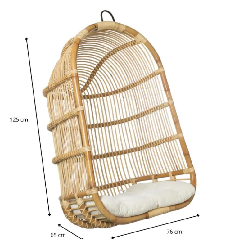 De hangstoel heeft een breedte van 70 cm en een diepte van 60 cm. De hoogte van de hangstoel is 125 cm, de breedte is 76 cm en de diepte is 65 cm. De zitdiepte van de hangstoel is 50 cm, de zitbreedte is 55 cm en de zithoogte is 40 cm. De hangstoel heeft een maximaal draagvermogen van 130 kg. Het metalen frame heeft een afmeting van 9x9x 1 cm.