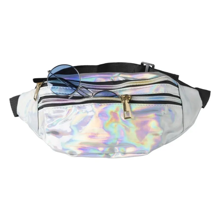 Dit zilverkleurige heuptasje is ideaal voor carnval. Handig en een tof design. Hiermee steel jij zeker de show. In het heuptasje kan je al je belangrijke items kwijt zoals je telefoon, portemonnee en sleutels.