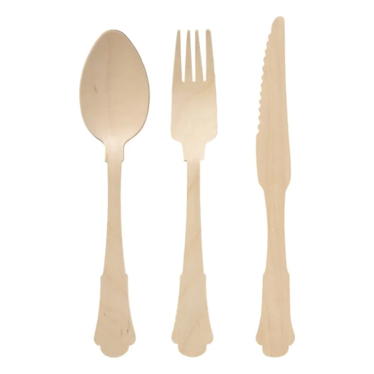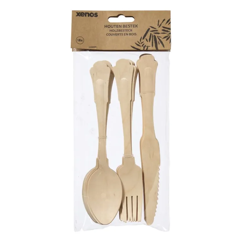Organiseer je een picknick, feestje of barbecue? Met dit houten bestek serveer je alles in een handomdraai én geef je je tafelsetting een natuurlijke look. De set bevat 18 stuks: vorken, messen en lepels. Ideaal voor wanneer je veel gasten hebt of gewoon geen zin hebt in afwas. Het bestek is gemaakt van 100% hout en heeft een lichte, naturel kleur. Stevig genoeg om er comfortabel mee te eten, maar na gebruik kun je het makkelijk weggooien. Handig voor buitenfeestjes, kinderpartijtjes of een snelle lunch onderweg. En extra fijn: het ziet er een stuk leuker uit dan plastic wegwerpbestek!