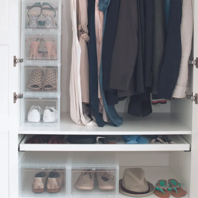 Iris biedt de perfecte oplossing in opbergen. De Iris schoenenbox gegoten in een mooi design om al jouw schoenen in op te bergen. Deze set bestaat uit drie schoenenboxen voor diverse schoenen zoals sneakers, sandalen en pumps. Dankzij het handig systeem is de schoenenbox stapelbaar en makkelijk te openen vanaf de voorkant. De schoenenbox is transparant waardoor de schoenen in de box zichtbaar zijn en je dus makkelijk de schoenen kunt vinden die je zoekt. De schoenenbox zorgt er ook voor dat de schoenen vrij van stof blijven. Handig voor in de kledingkast of om los of op elkaar te stapelen in de gang.