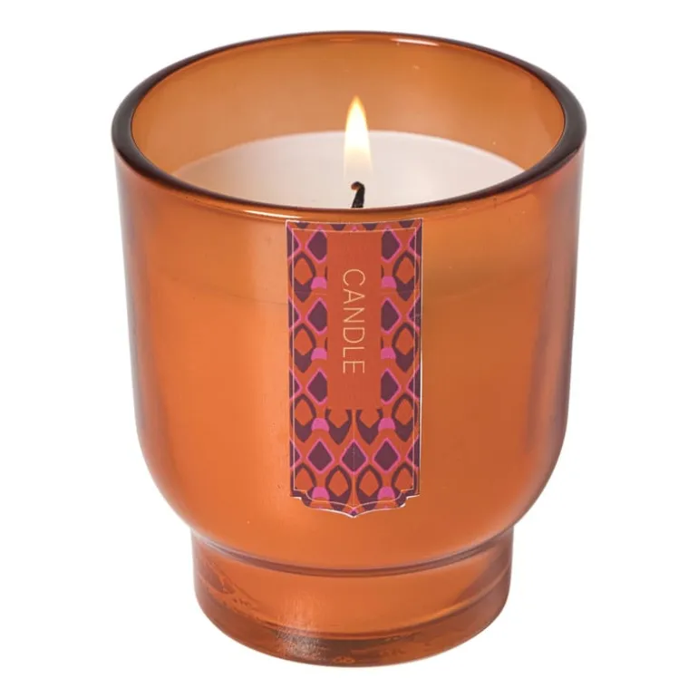 Deze kaars in oranje glas zorgt direct voor een warme sfeer. De vrolijke kleur geeft een zonnige touch aan je interieur, zelfs als de kaars uit is.