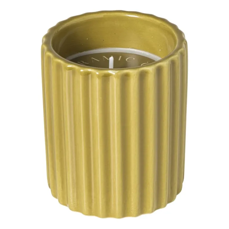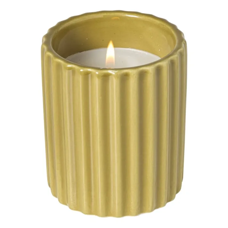 Deze olijfgroene kaars straalt mediterrane charme uit. Het keramieken potje heeft een zachte, matte afwerking die mooi past bij warme houttinten en aardse accessoires. Ideaal voor een knusse avond met zachte verlichting.