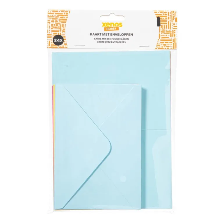 Een kaartje sturen is altijd een goed idee! In deze set van 24 zitten vrolijk gekleurde kaarten en bijpassende enveloppen. Blanco binnenin, dus ruimte genoeg voor jouw persoonlijke boodschap. Leuk voor verjaardagen, bedankjes, uitnodigingen of zomaar. Altijd handig om in huis te hebben.