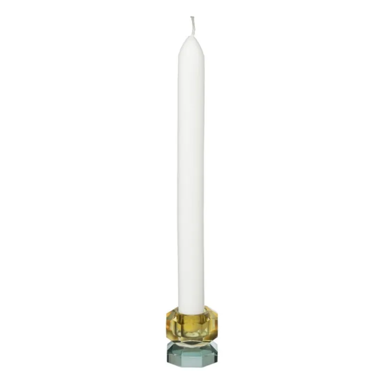 Deze funky dinerkaarshouder bestaat uit 2 gekleurde laagjes kristalglas. De houder is modern en kleurrijk en verkrijgbaar in diverse kleuren en maten. Mix & match de kandelaar met een dinerkaars in je favoriete kleur.